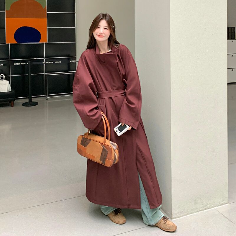 Ankora Красный Корейский Ретро Ветровка Пальто Женская Осенняя Новая Свободная Узкая Куртка