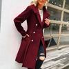 Осенне-зимнее длинное женское шерстяное пальто большого размера с двубортной застежкой