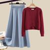 Весенний костюм женский 2 новых большого размера носить темперамент вязаный свитер юбка Маillard носить полный комплект