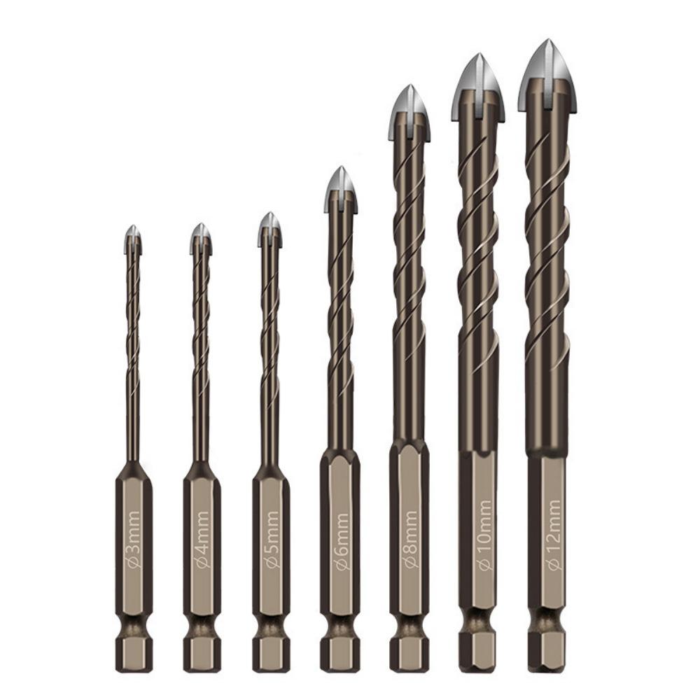 Four-Edged Cross Tile Drill Bits Set Anti Slip Hex Shank Hole Opener Woodworker