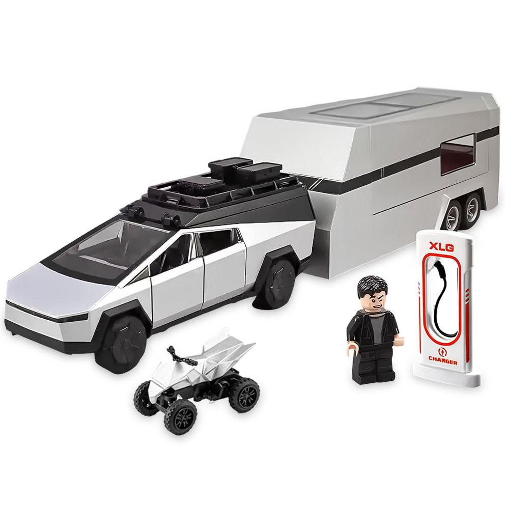 1:28 Scale Die-cast Metal Cyber Pickup Truck Camping RV Model, Alloy Pull-back Toy, Silver