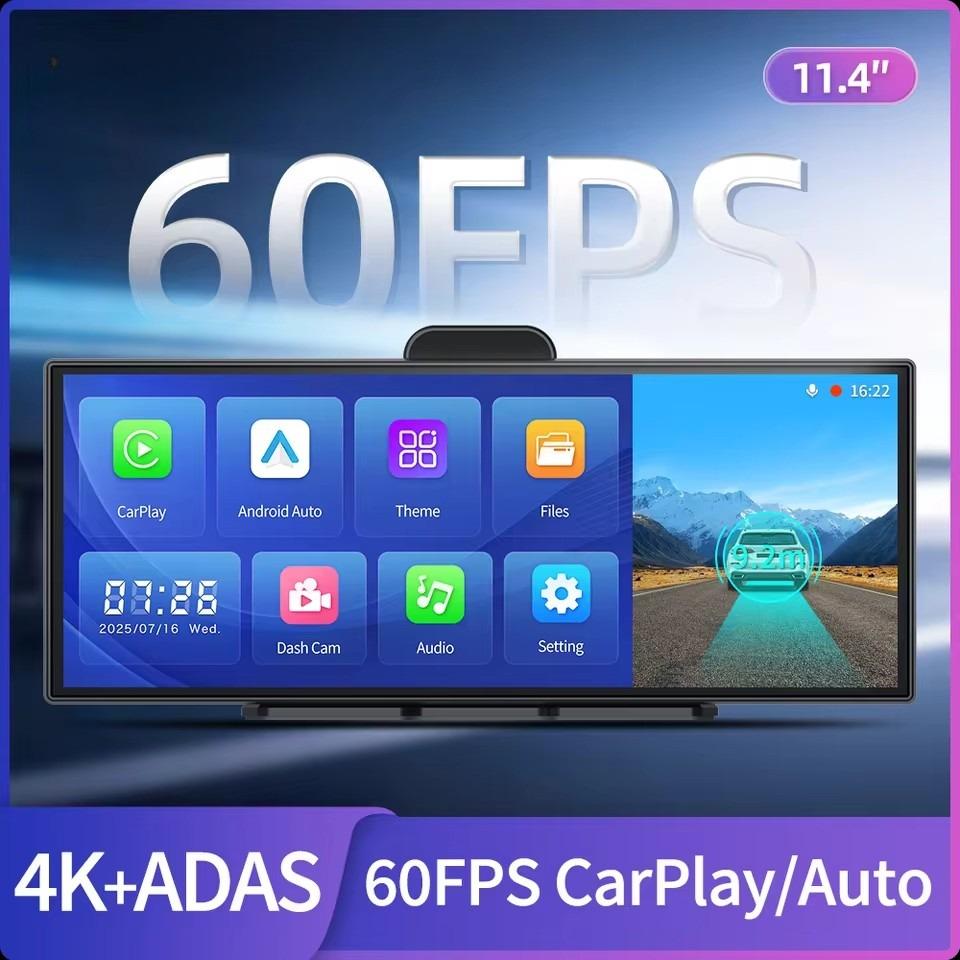 H70 Plus 11,4″ 4K ADAS Видеорегистратор 60 кадров/сек Беспроводной Car Play и Android Auto Двойная запись Ночное видение DVR