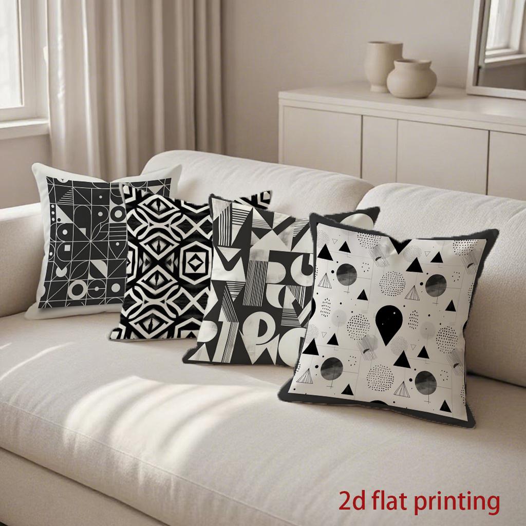 2D Geometric Pattern Black & White Pillow Covers Pattern Cushion Cover Suitable For Sofa Bedroom Car Pillow Cover