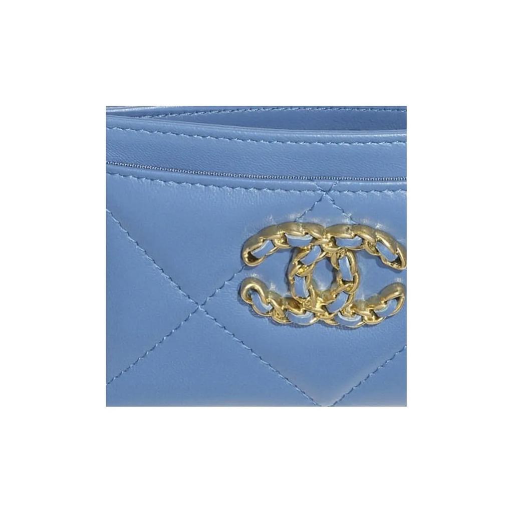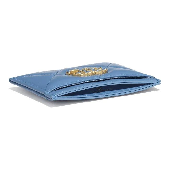 Chanel 19 Сумок Алмазная Стежка Металлические Акценты Держатель для Карт из Кожи Ягненка Женский Синий