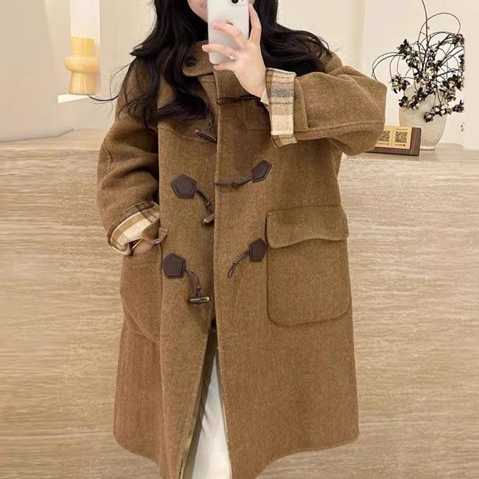 Классическое двустороннее шерстяное пальто в клетку с принтом Медведь , пальто на роговых пуговицах для невысоких — купить товар онлайн с бесплатной доставкой по всему миру!