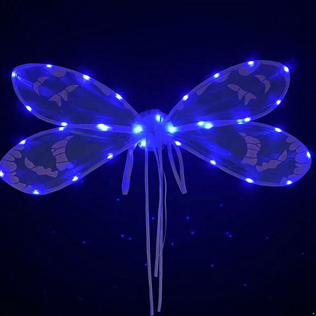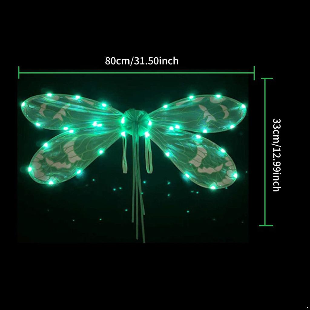LED Light Up Dragonfly Wings for Fairy Costume, Halloween Masquerade Party Dress Up Props with Adjustable Strap, Battery Operated