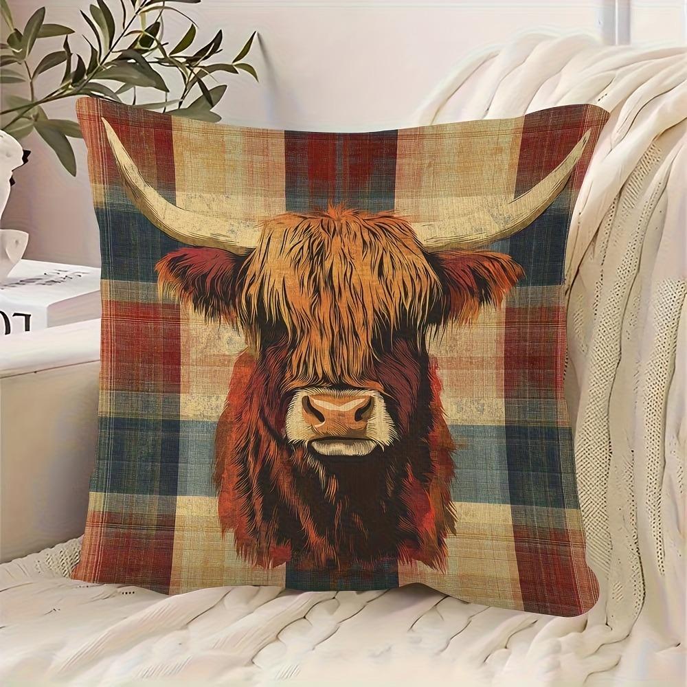 Односторонняя наволочка с принтом: клетчатый фон и яркий дизайн шотландской коровы — купить товар онлайн с бесплатной доставкой по всему миру!