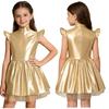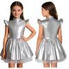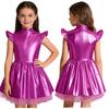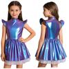 Переливающееся инопланетное платье-пачка для девочек, Блестящий костюм с воротником-стойкой, летящими рукавами и молнией на спине, Для сценических выступлений и вечеринок