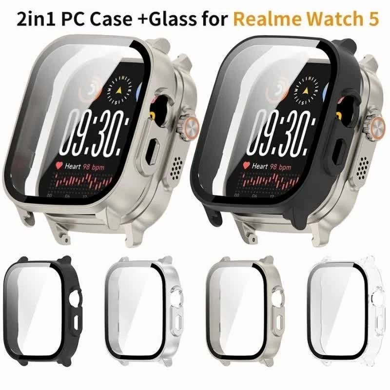 Case For Realme Watch 5 PC+Tempered Glass Bumper Full Cover Protective Shell For Realme Watch5 Screen Protector Accessory