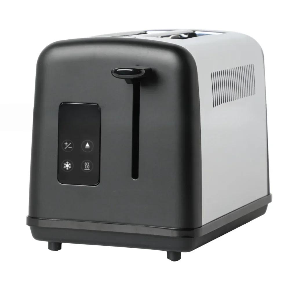 Тостер из нержавеющей стали на 2 ломтика с сенсорным интерфейсом и регулируемыми уровнями поджаривания для хлеба и бейглов