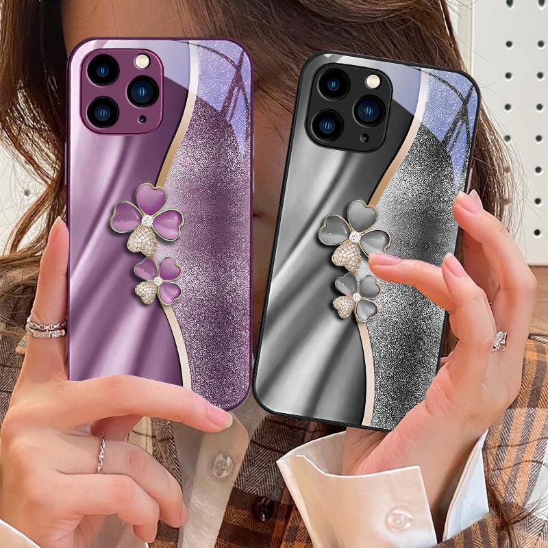Роскошный чехол для телефона из закаленного стекла с четырехлистным клевером для iPhone 16 Pro Max 15 Pro 14 13 12 Mini 11 XS Max XR 7 8 Plus SE 2022