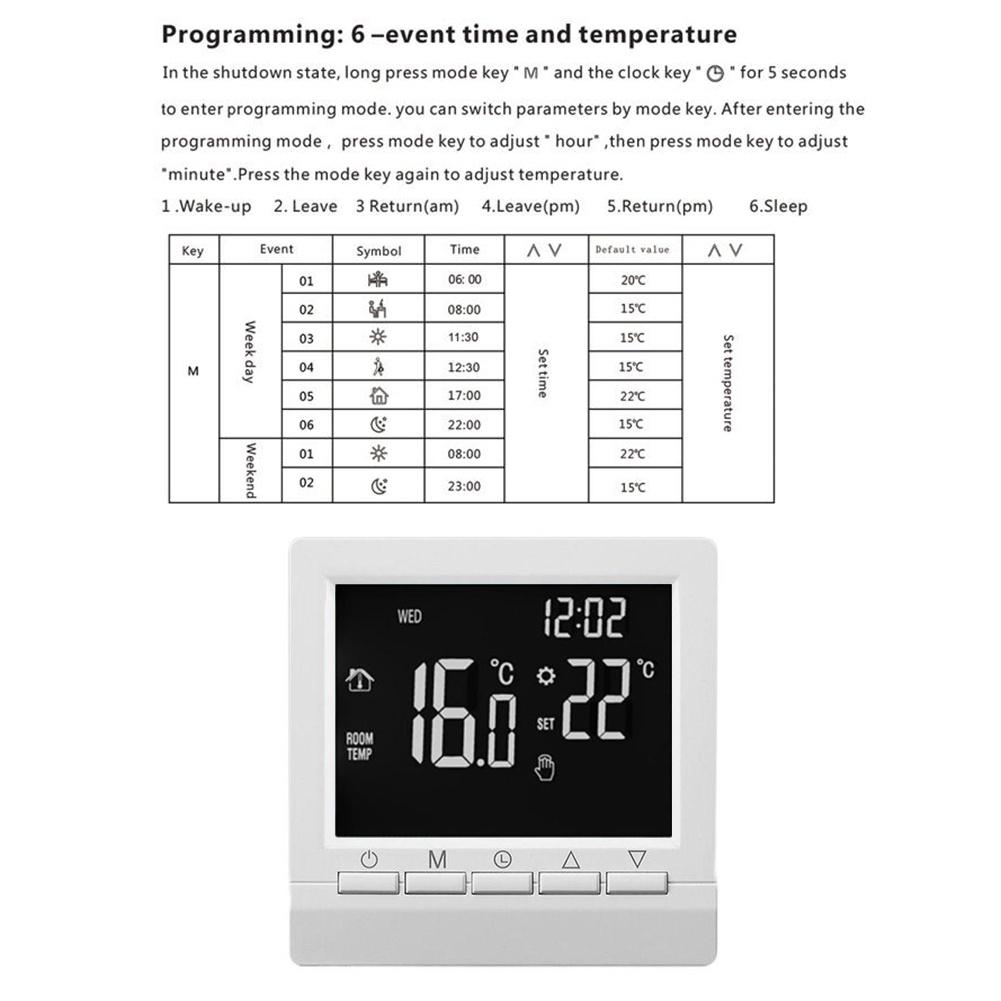 Boiler Thermostat Programmable Digital Room Temperature Controller 110-230V For Home Heating Anti Freeze Protection