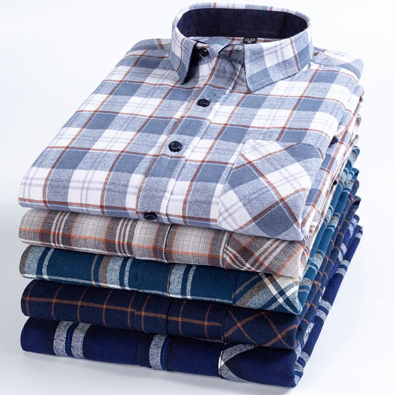 Мужская мода 100% хлопок толстые фланелевые рубашки с начесом один накладной карман длинный рукав стандартный крой клетчатая повседневная рубашка — купить товар онлайн с бесплатной доставкой по всему миру!