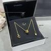 18k Gold Ice Moon & Bean Pendant Necklace Set with Diamond Pattern Choker — купить товар онлайн с бесплатной доставкой по всему миру!