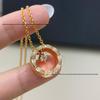 18k Gold Ice Moon & Bean Pendant Necklace Set with Diamond Pattern Choker