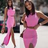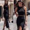 Новый весенне-летний женский комплект из двух предметов 2026 года: однотонный топ с круглым вырезом без рукавов и юбка-миди с боковым разрезом – облегающий костюм — купить товар онлайн с бесплатной доставкой по всему миру!
