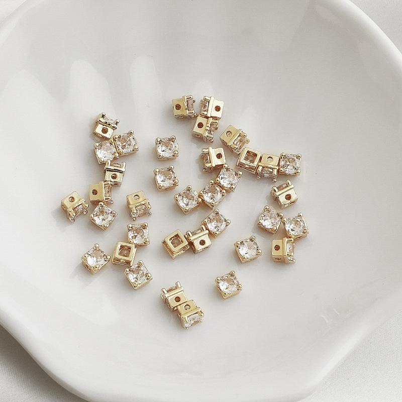 Позолоченные (14K) квадратные бусины-разделители с цирконами в форме креста для изготовления украшений своими руками