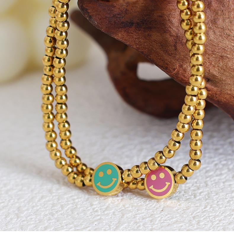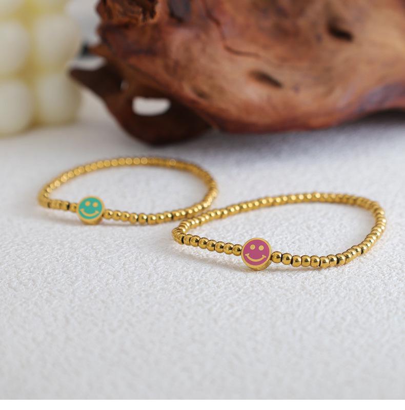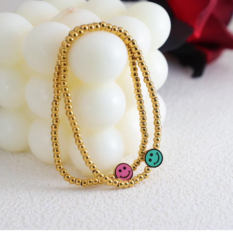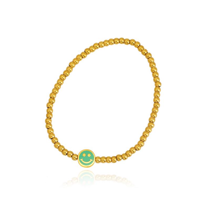 Браслет из эластичной нити с пастельно-зеленой бусиной в виде улыбающегося лица с позолотой 18 карат для женщин