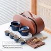 LV Grid Ceramic Travel Kung Fu Tea Set with Portable Bag - One Pot, Three Cups