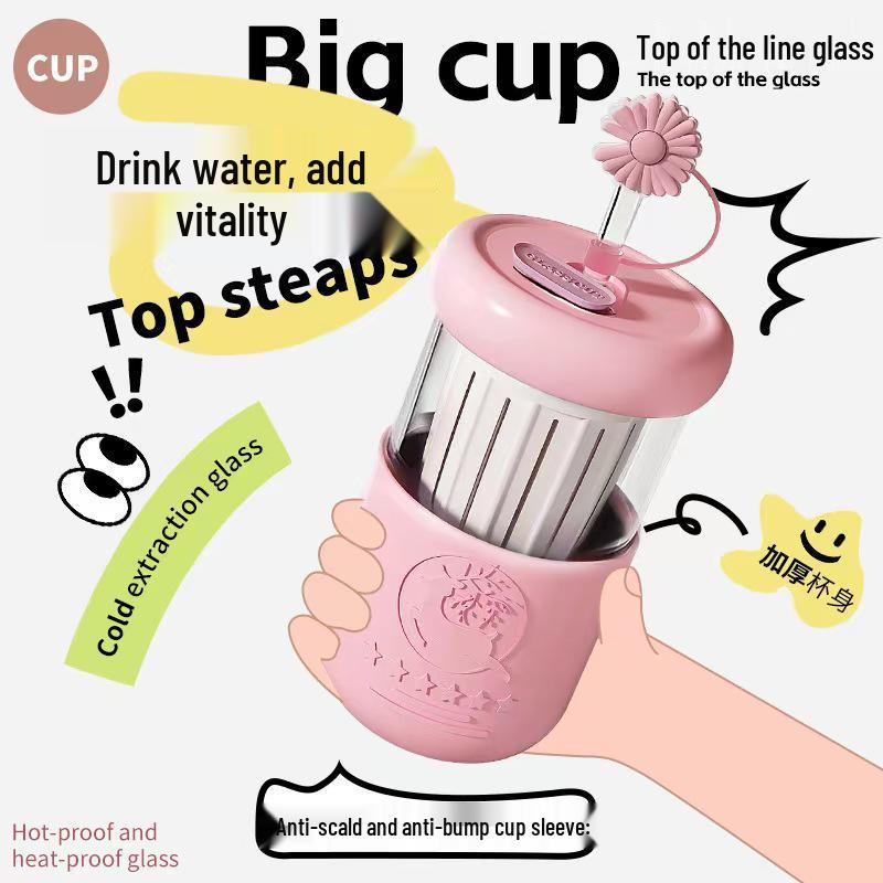Charming Floral Tea Cup with Sleeve - Lemon Portable Mug for Milk, Coffee, Tea, Water; Includes Straw for Separation, Large Capacity.