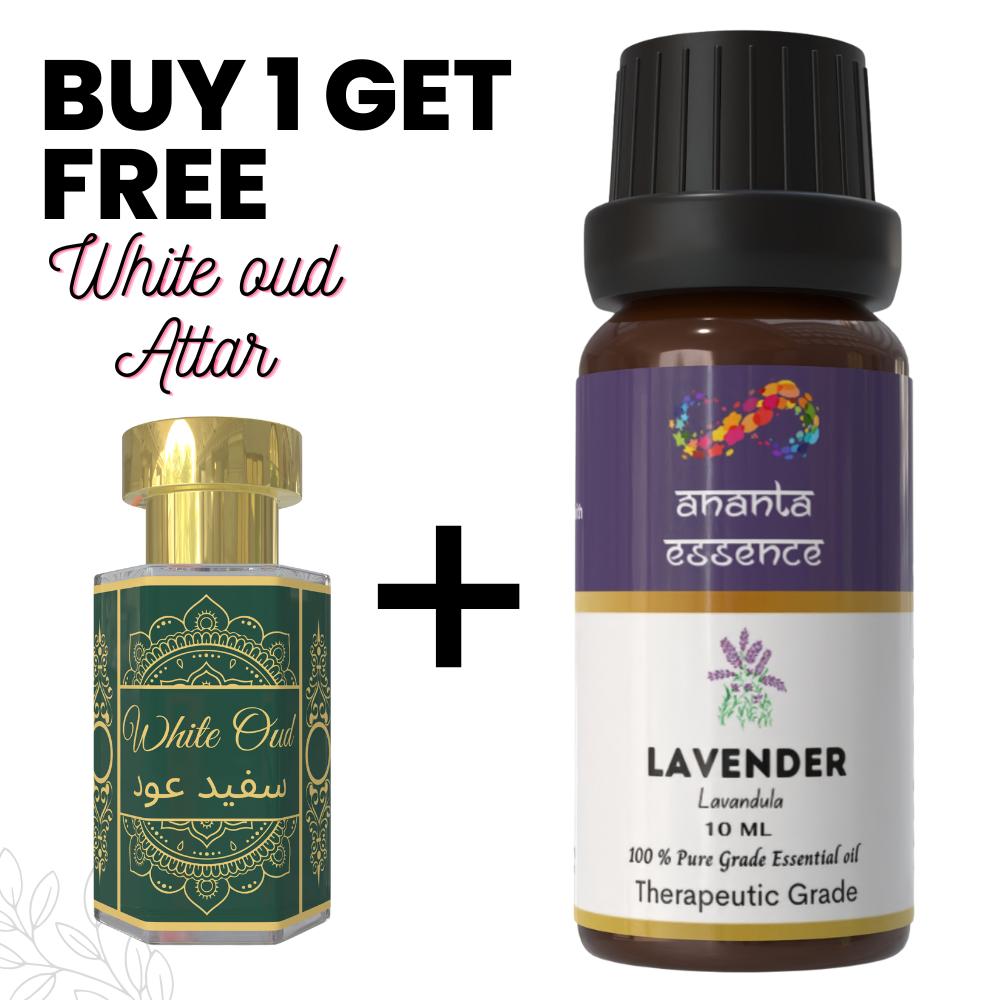 Create a pleasant and elegant atmosphere with Lavender Essential Oil, suitable for aromatherapy, home fragrance, and diffuser use. This pack includes a Free White Oud Attar as a complimentary fragrance, adding a soft, woody note for personal use or gifting.