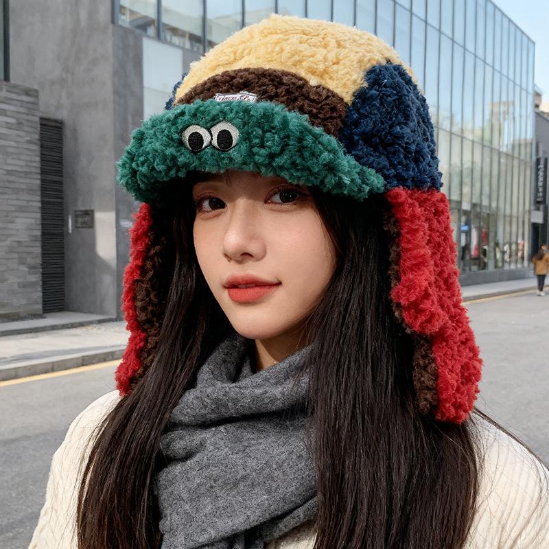 Новая женская цветная шапка с рисунком мультяшных глаз, зимний милый стиль, теплая шапка-ушанка, модный головной убор для холодной погоды, винтажный повседневный