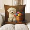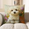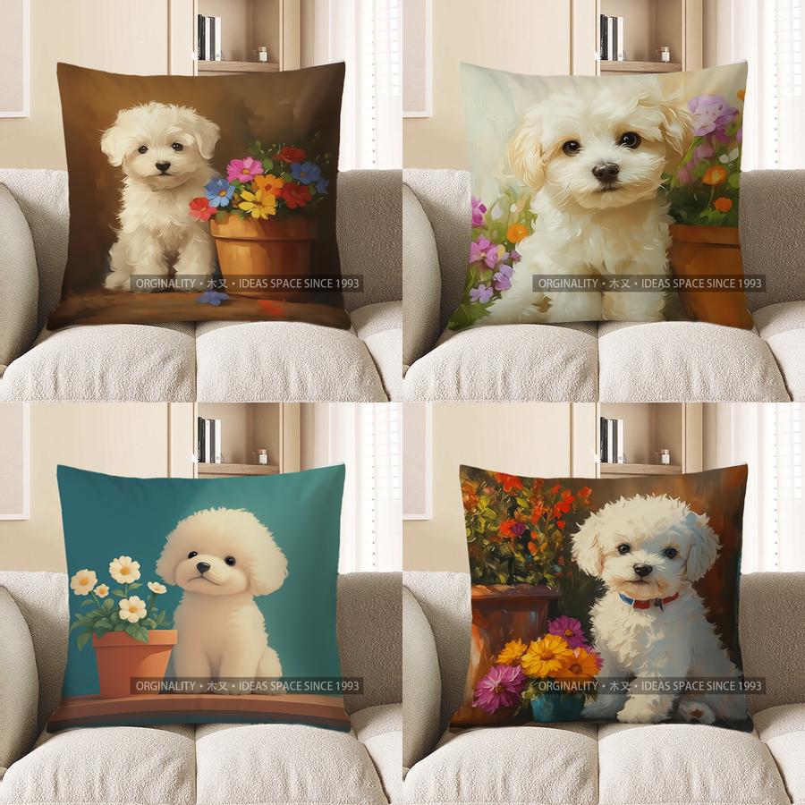 Home Decor Cute Puppy With Flowers Throw Pillow Cover Pattern Cushion Cover Suitable For Sofa Bedroom Car Pillow Cover