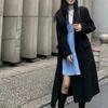 Длинное черное пальто-куртка женское, ветровка женская, костюм средней длины женский, женский костюм высокого класса
