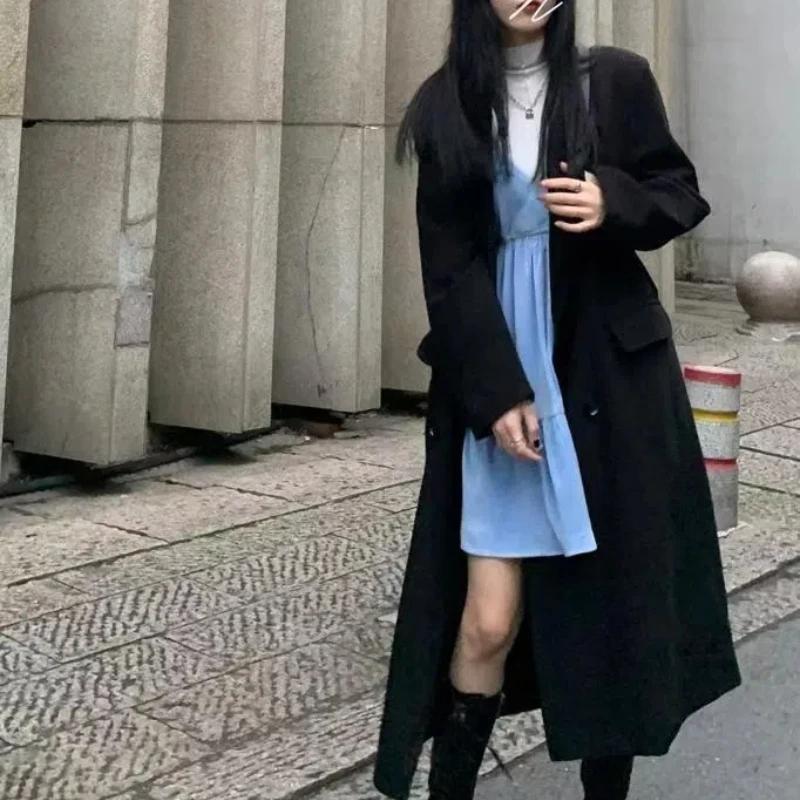 Длинное черное пальто-куртка женское, ветровка женская, костюм средней длины женский, женский костюм высокого класса — купить товар онлайн с бесплатной доставкой по всему миру!