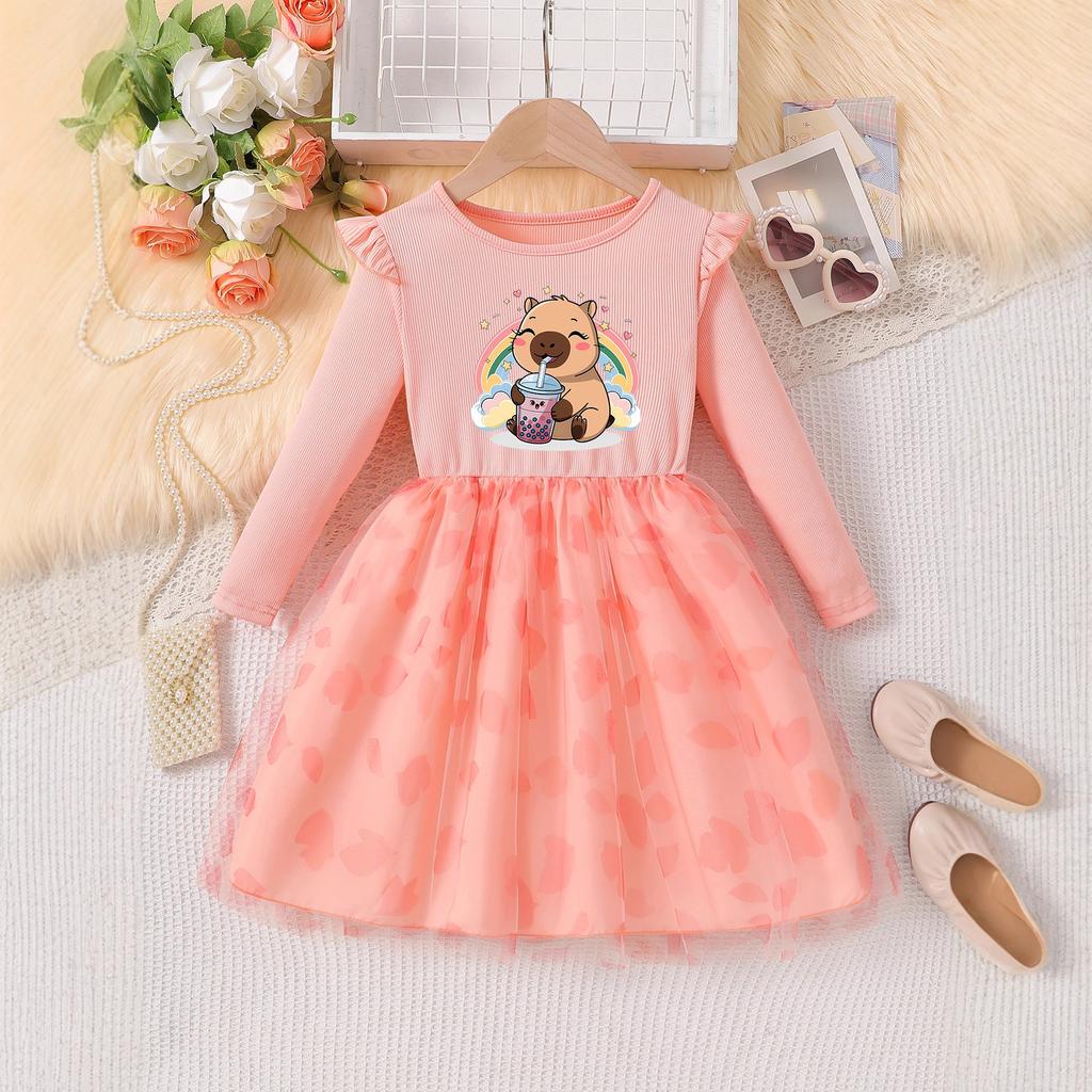 Очаровательное платье с длинным рукавом и изображением капибары для девочек, летняя детская мода, мультяшное пышное платье принцессы — купить товар онлайн с бесплатной доставкой по всему миру!