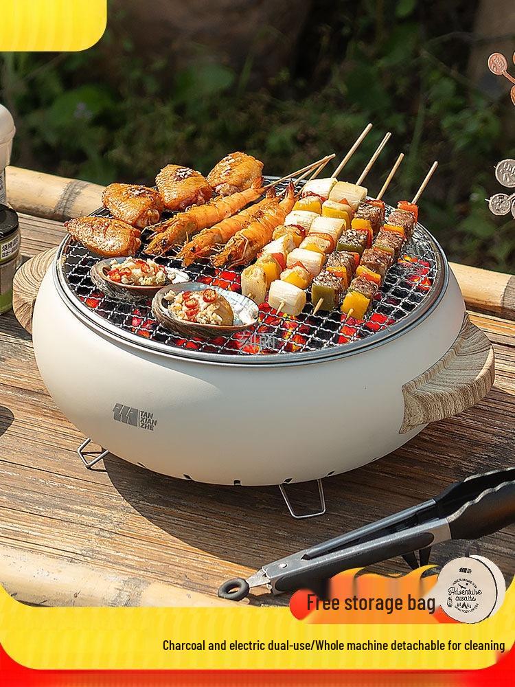 Электрический гриль и кострище двойного назначения: Набор для барбекю в помещении, варки, выпечки и угольная печь