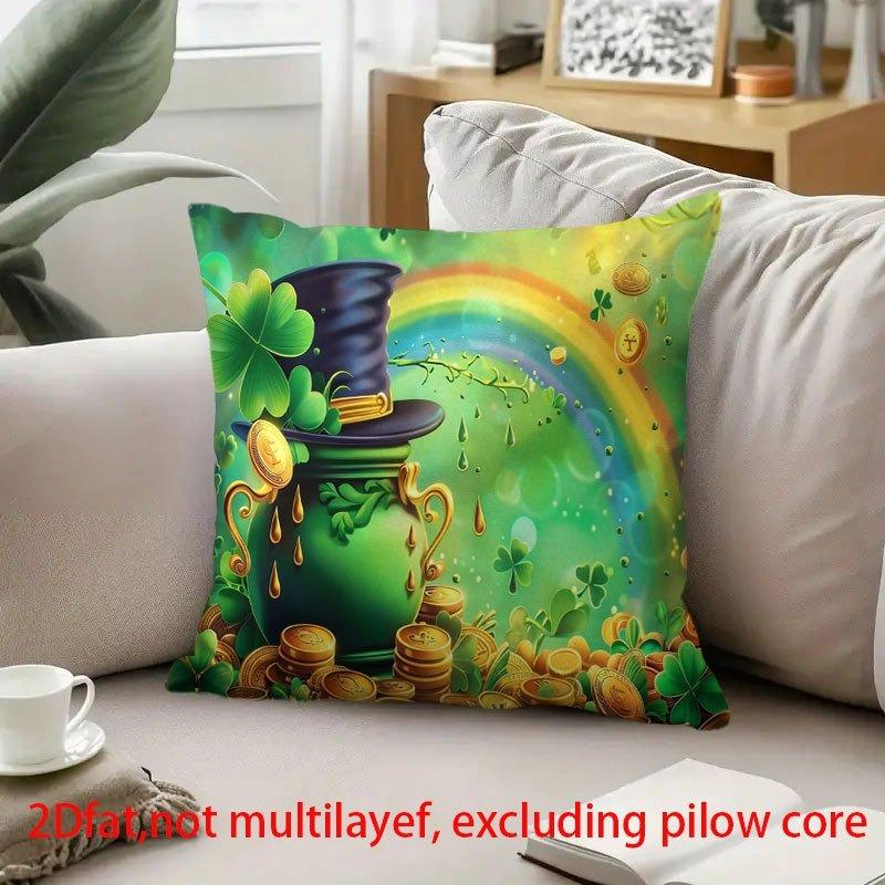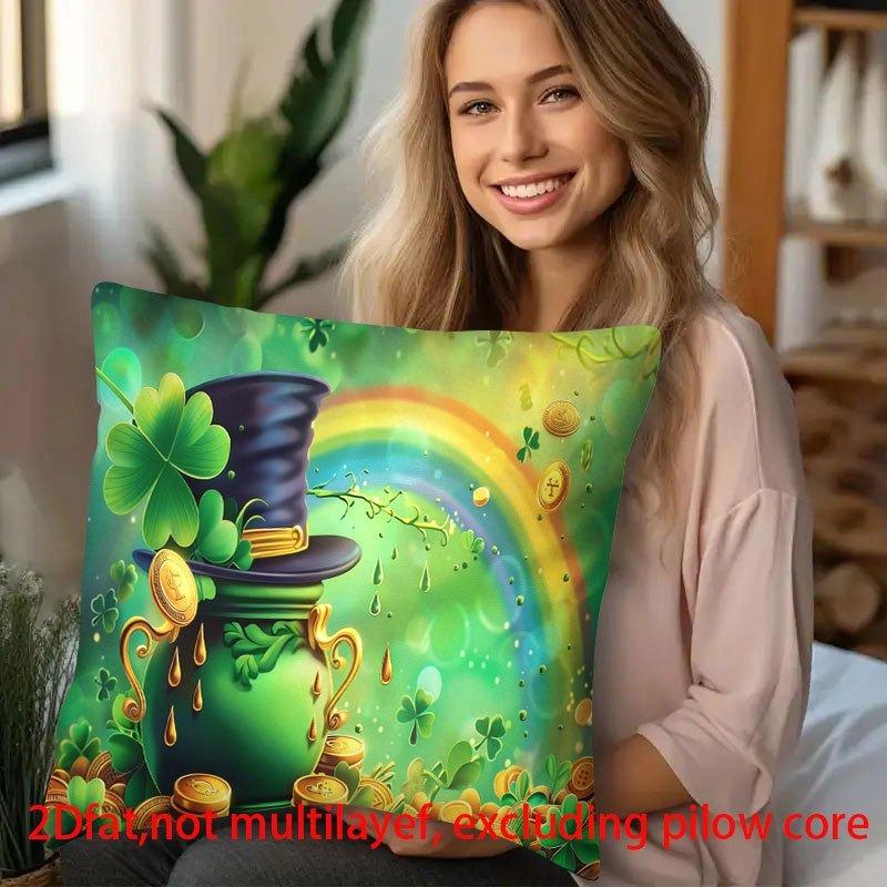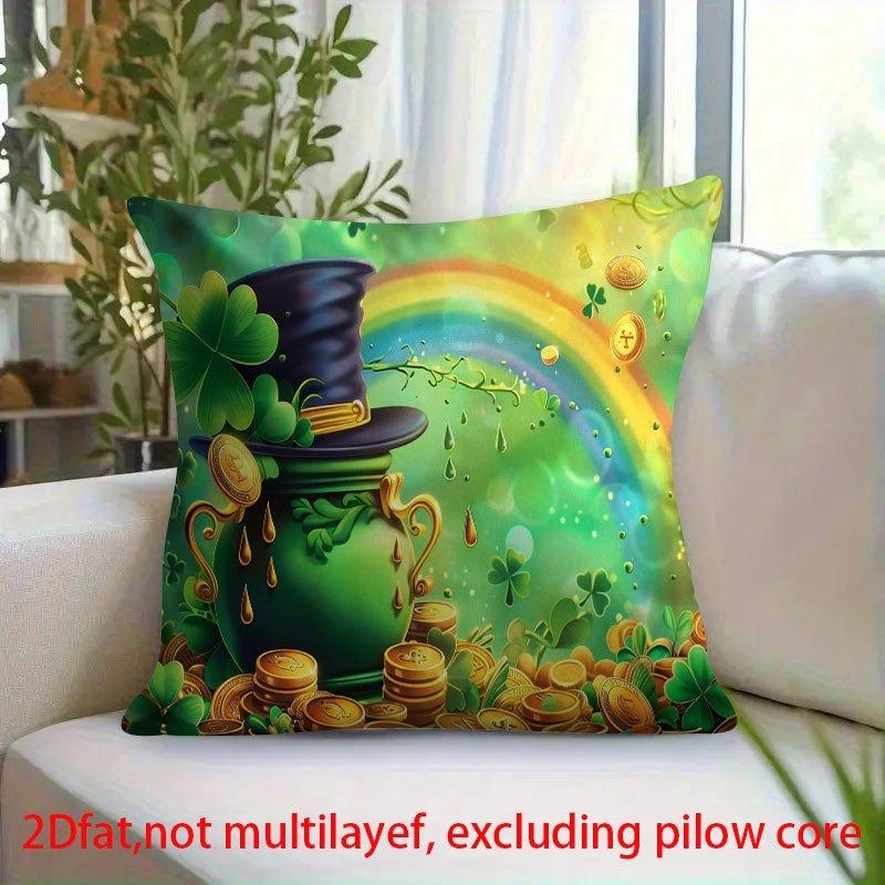 1 упаковка ирландской счастливой наволочки - Блестящий золотой горшок с принтом радуги и клевером Нет