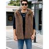 Мужской полосатый жилет с капюшоном из искусственного меха, теплый, без рукавов, повседневный
