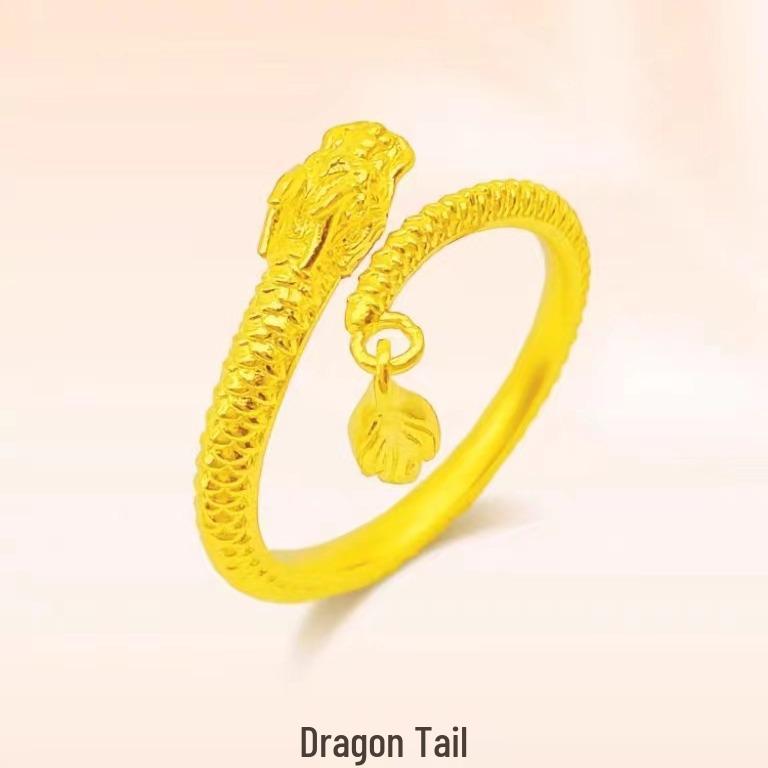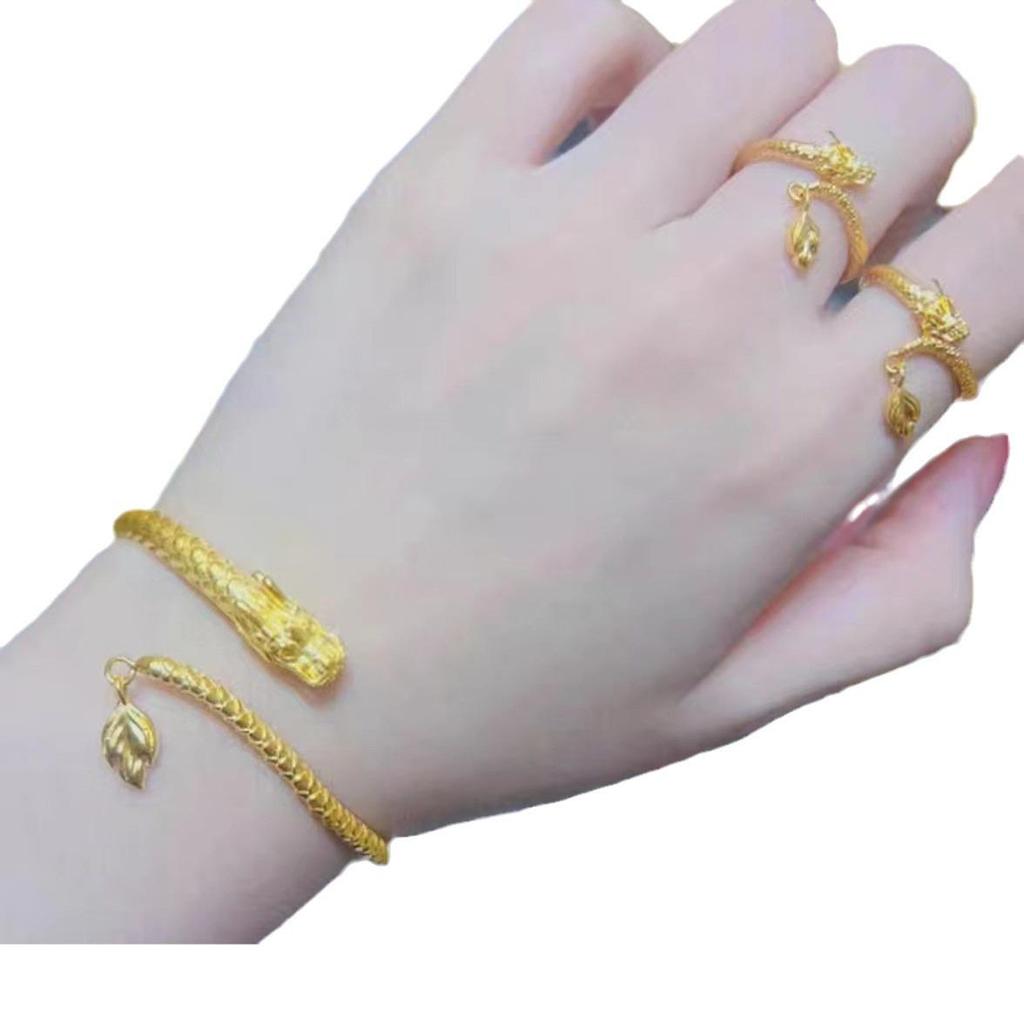 Vietnam Sand Gold Dragon Tail Bracelet & Ring Set - Zodiac Year of the Dragon, Dynamic Open Finger Design