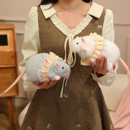 Мягкий и Очаровательный Внешний Вид: Изготовленная из плюшевой ткани молочно-белого и светло-серого цвета, мышь может похвастаться пушистой, бархатистой текстурой.. Украшенное кружевной юбкой и бантом, его изысканное очертание источает милоту, которая особенно близка девочкам и любителям плюша.