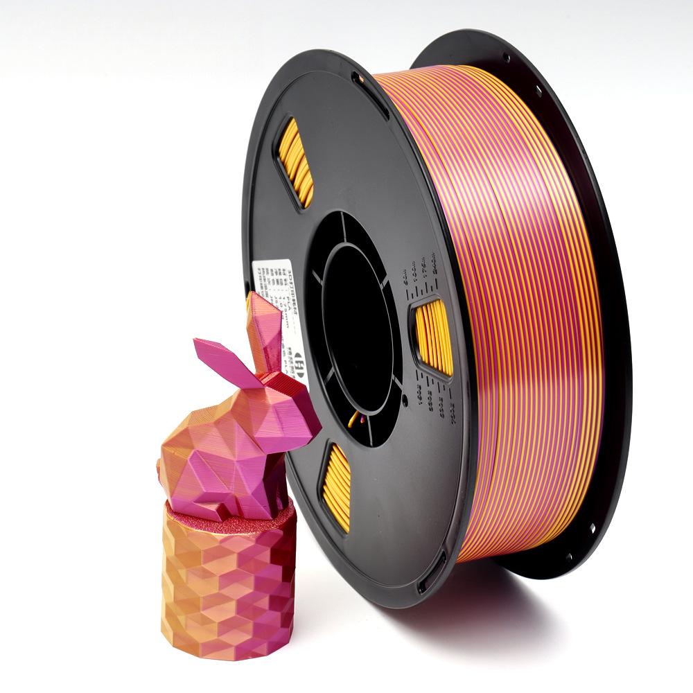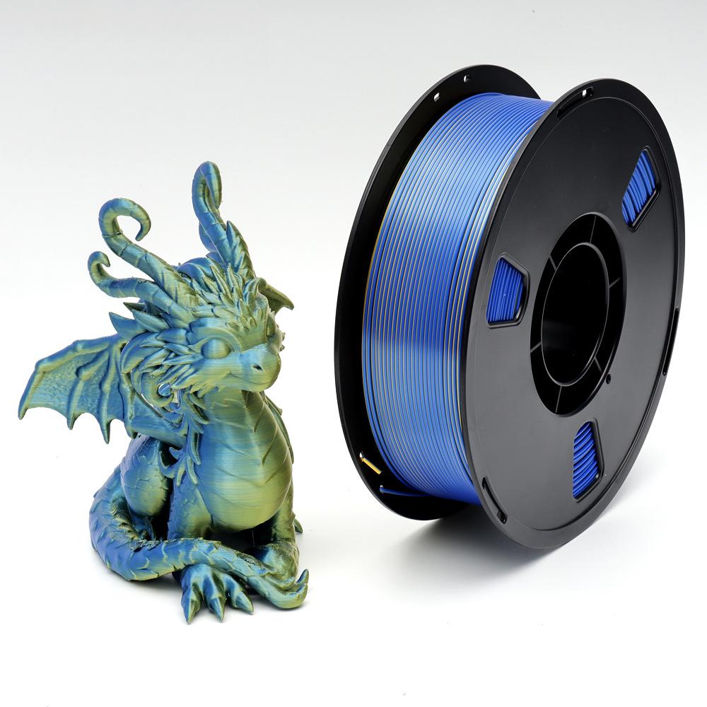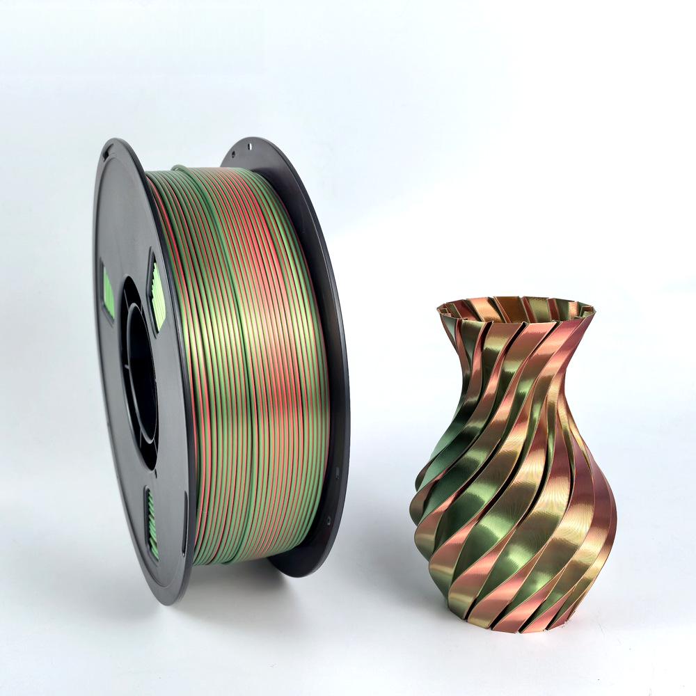 Dual-Color Silk PLA 3D Printing Filament, Non-Clogging & High Toughness, Imitation Metal, 1.75mm, 1kg