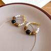 Серебряные обручи с искусственным жемчугом и деревянными бусинами - Осенне-зимние высококлассные нишевые серьги для женщин