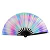 Новый складной бамбуковый веер 33 см, легкий, ручной, лазерные цвета, портативный, ПВХ, щелкающий, для линейных танцев