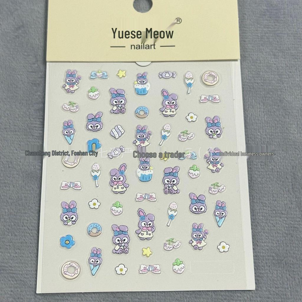 StellaLou Purple Rabbit Embossed Nail Stickers for DIY Journaling — купить товар онлайн с бесплатной доставкой по всему миру!