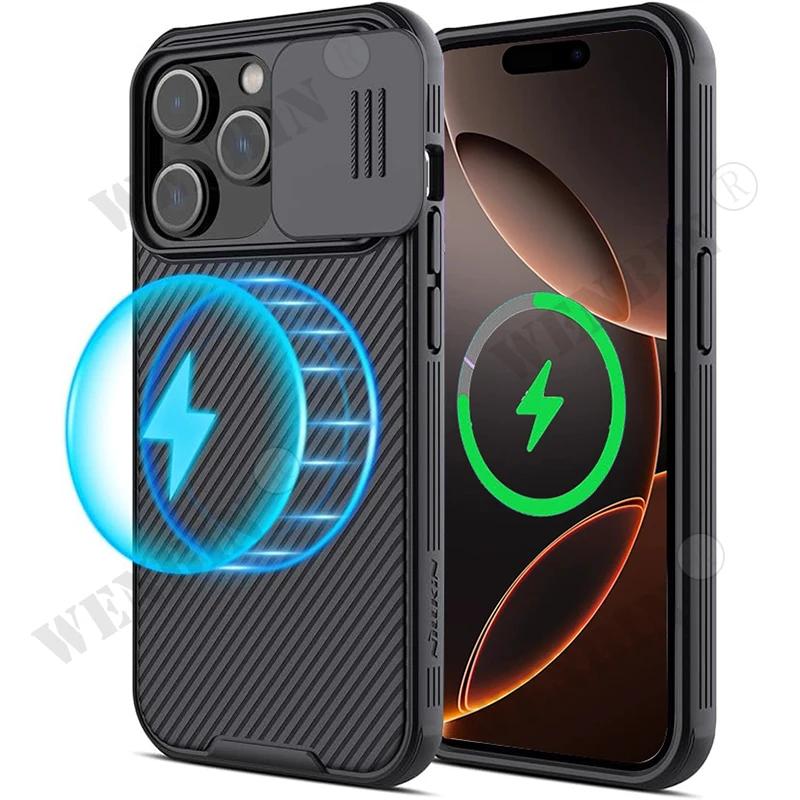 Магнитный чехол для iPhone 16 15 14 13 12 Pro Max Plus 11 Mini Защитная крышка с окном для линзы Ударопрочный Защитный чехол