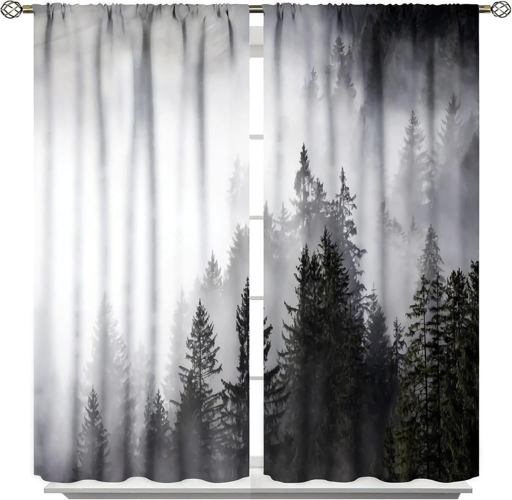 Шторы "Туманный Лес" Занавески для Окна Гостиной Спальни с Рисунком "Туманная Гора", Навесные на Штангу, Сосна, Природный Пейзаж, Искусство 42x63 дюйма(10