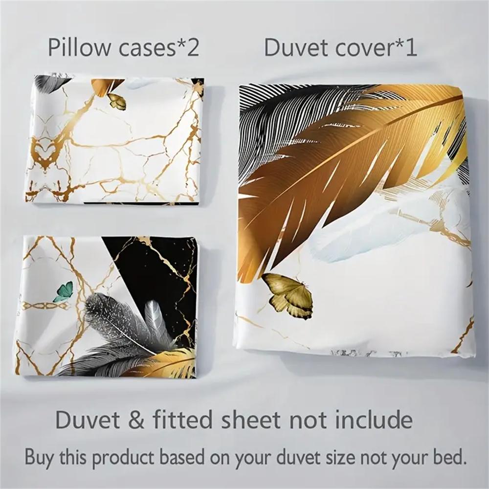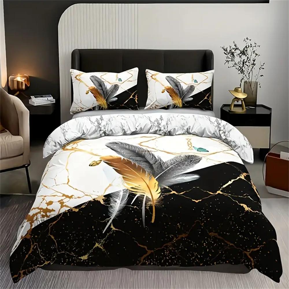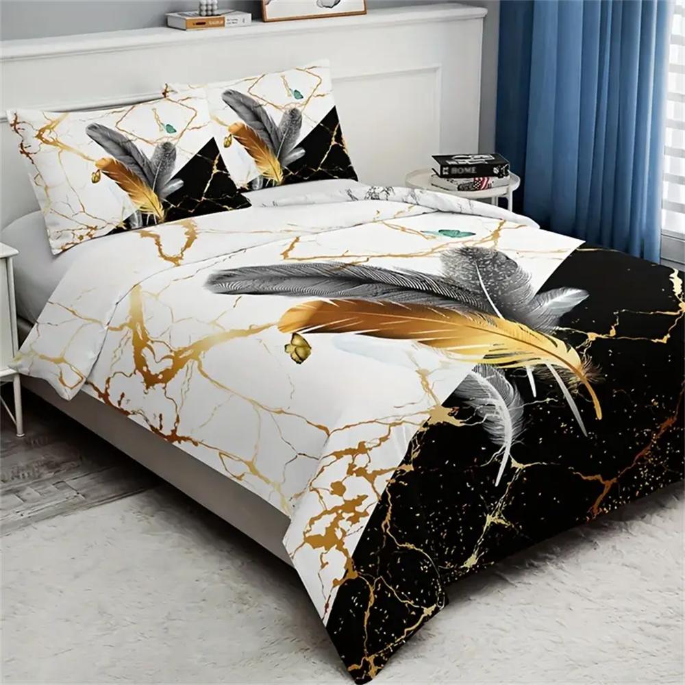 Роскошный набор пододеяльников с принтом "Мраморное перо" - Мягкое, дышащее и удобное постельное белье для всех сезонов