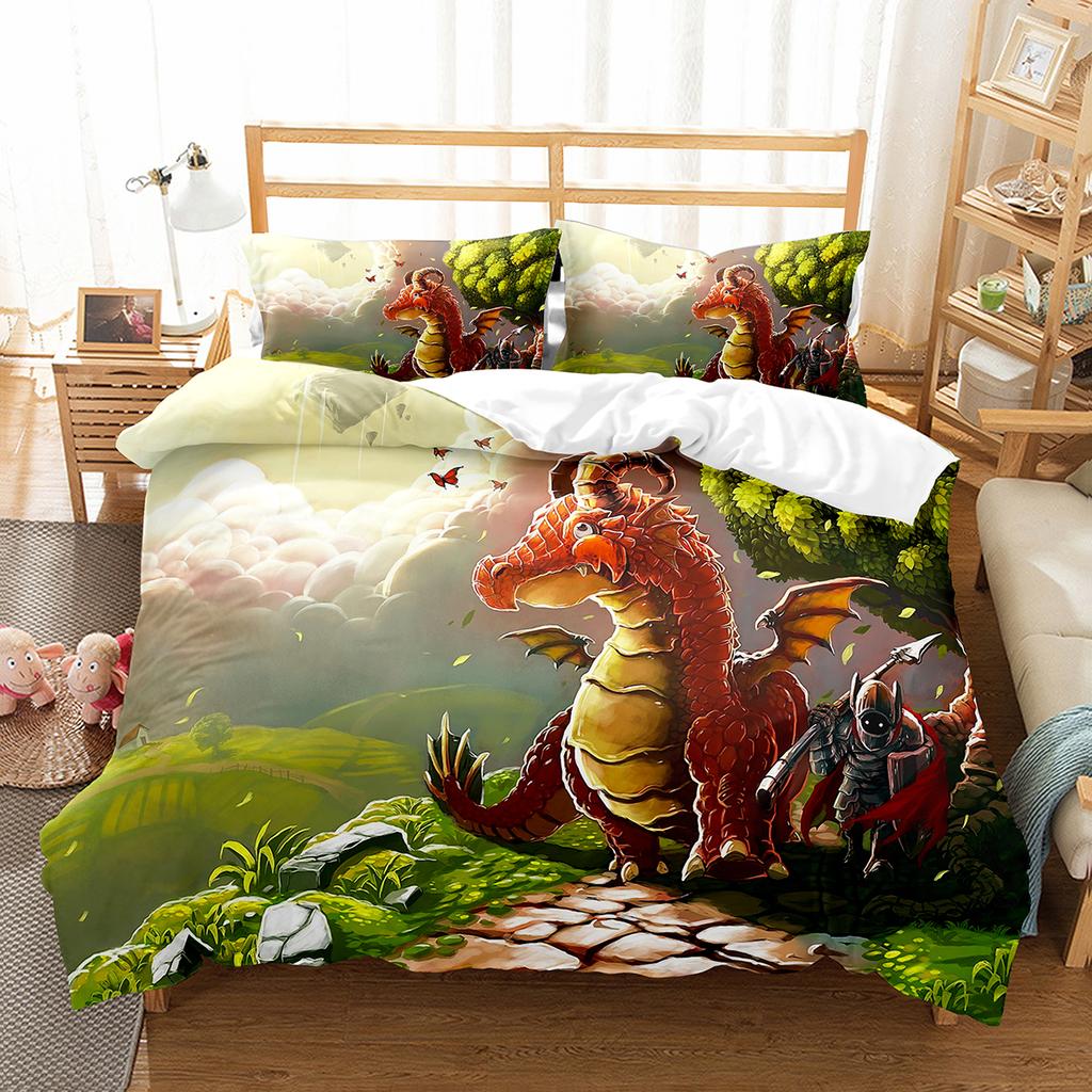 Пододеяльник с изображением мультяшного дракона, короля и королевы, детский комплект постельного белья с изображением животных для мальчиков, прекрасное волшебное существо, пододеяльник из полиэстера