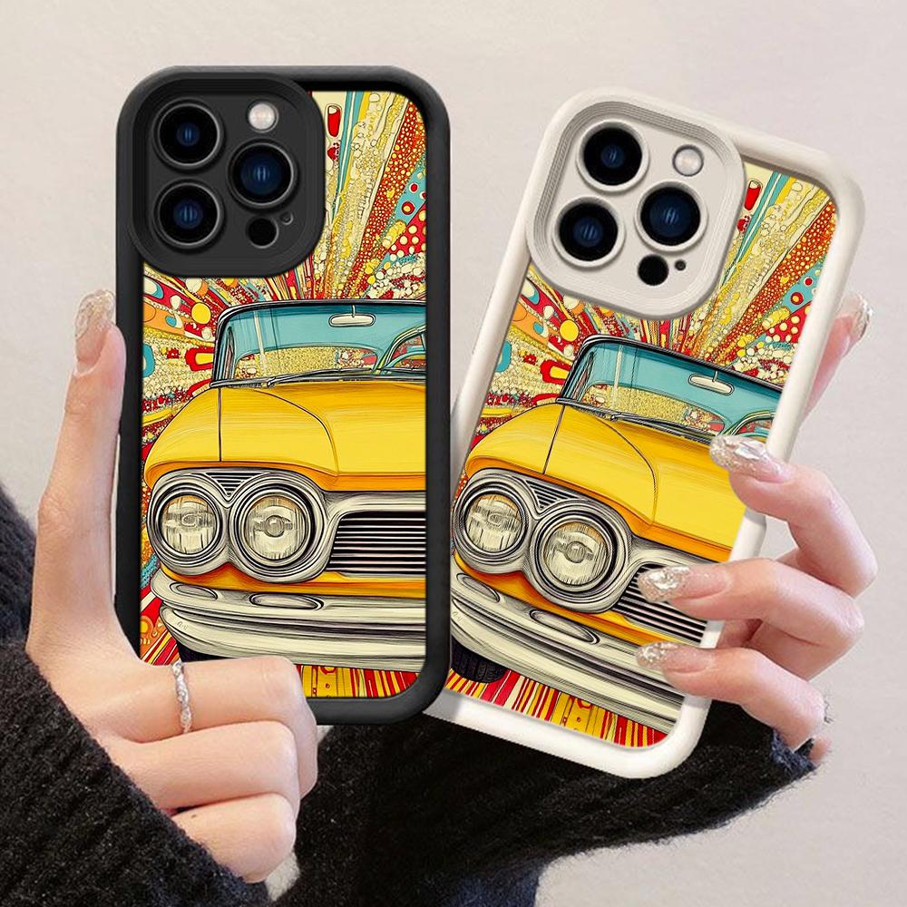 JJT116 Мультяшный Хиппи 80-х Бесшовный Майами-Вайб Поп-Арт для iPhone 17 16 15 Pro Max Samsung S26 S25 Ultra A17 A16 A07 A56 Xiaomi 15T Redmi 15c Мягкий Чехол