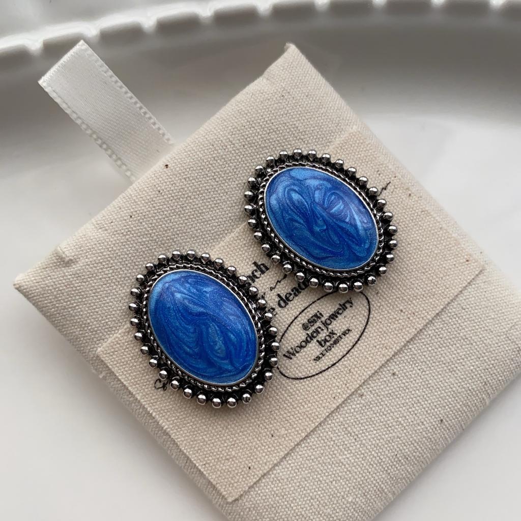 Овальные Синие Текстурные Серьги-Капли Серьги Нишевые Легкая Роскошь Личность Этнический Стиль Изысканные Высокий Темперамент Серьги
