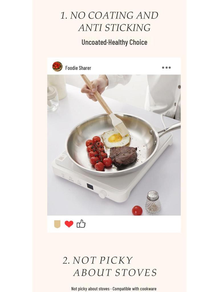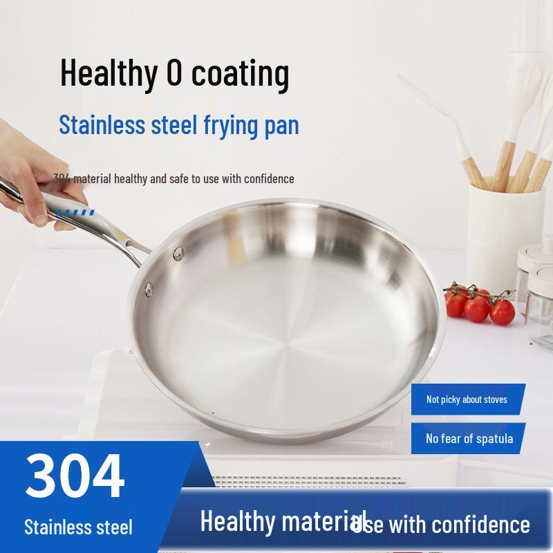 Uncoated 304 Stainless Steel Flat-Bottom Frying Pan for Induction Cookers - Non-Stick Egg Wok