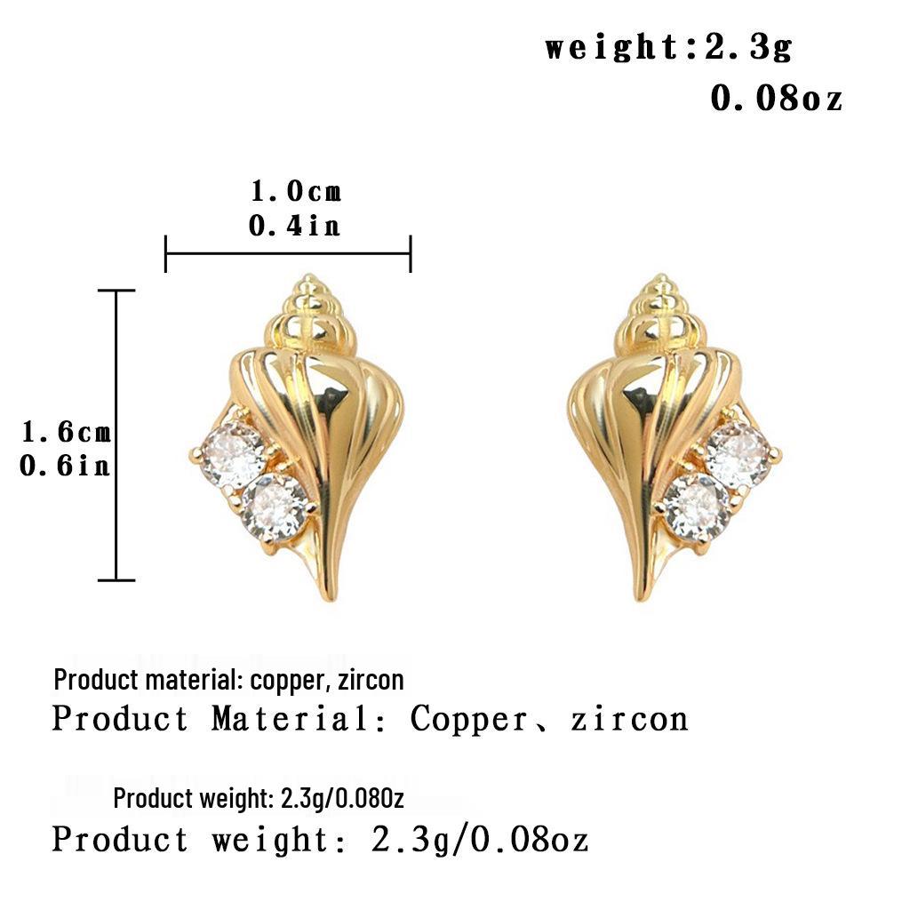 Серьги-гвоздики из полированного металла в форме раковины с цирконами: Простой, Легкий Люкс в Отпускном Стиле для Женщин — купить товар онлайн с бесплатной доставкой по всему миру!