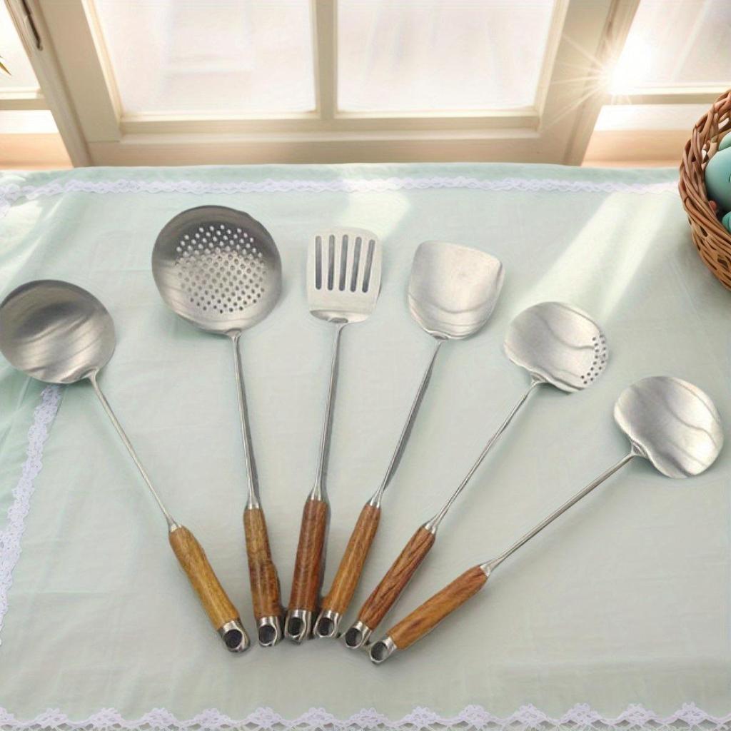 Stainless Steel Spatula & Slotted Spoon Set with Polished Finish and Rosewood Handle