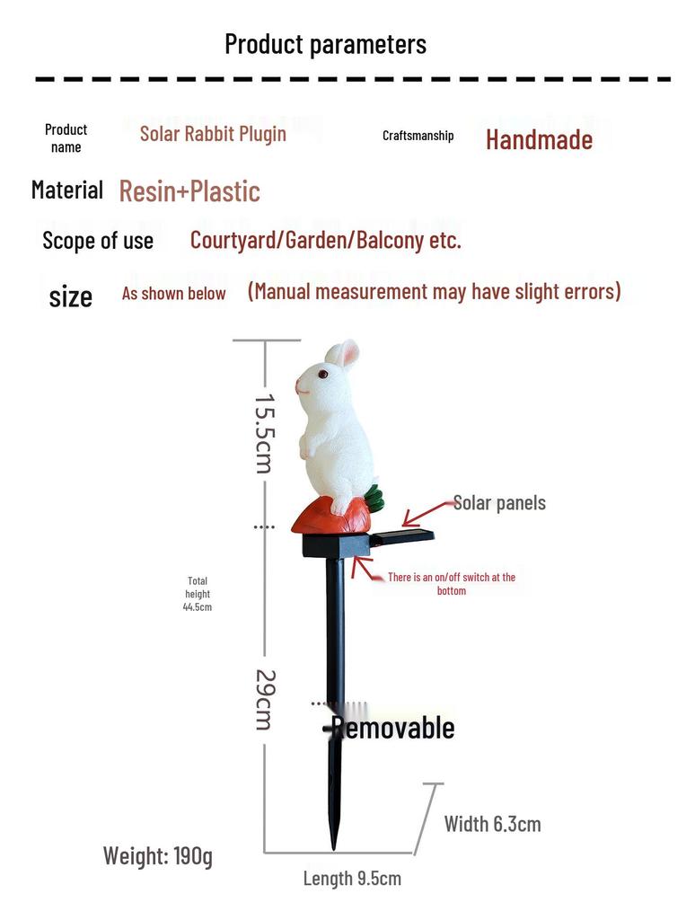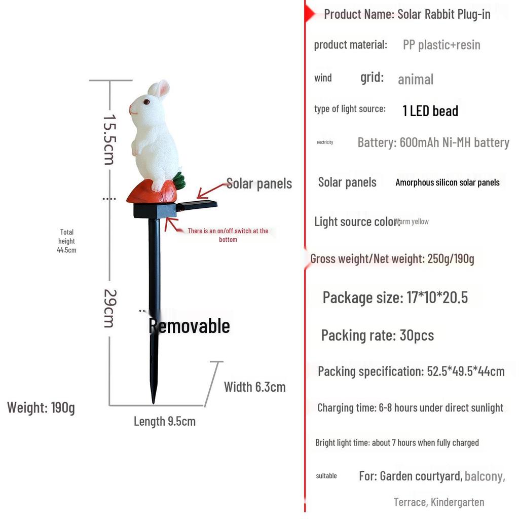 Трансграничный солнечный светодиодный светильник-кролик из смолы: Водонепроницаемый садовый колышек для ландшафтного дизайна