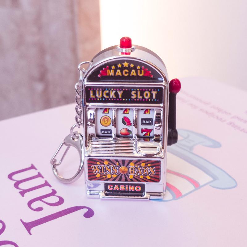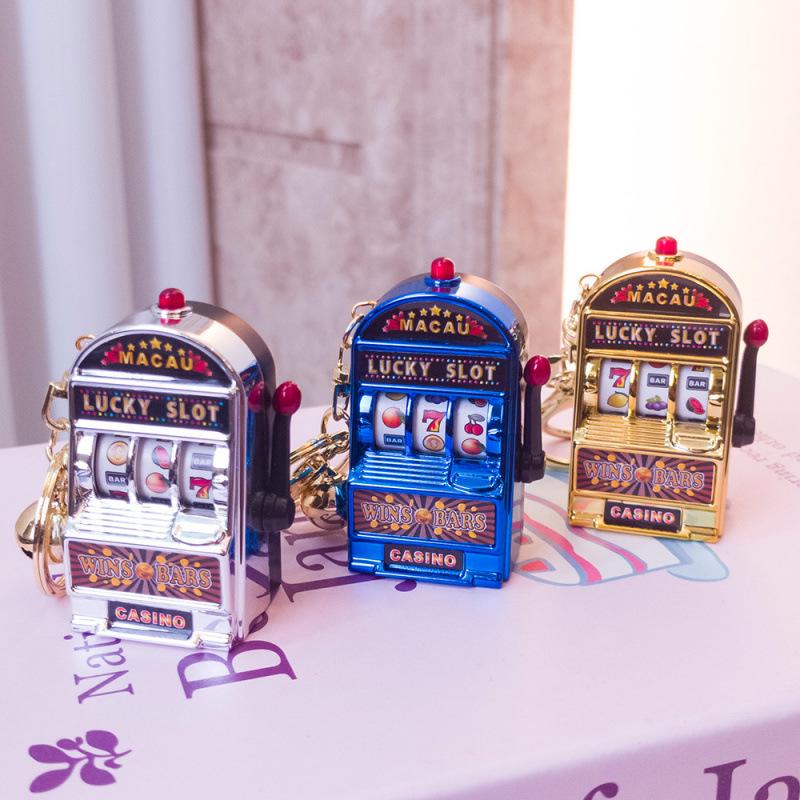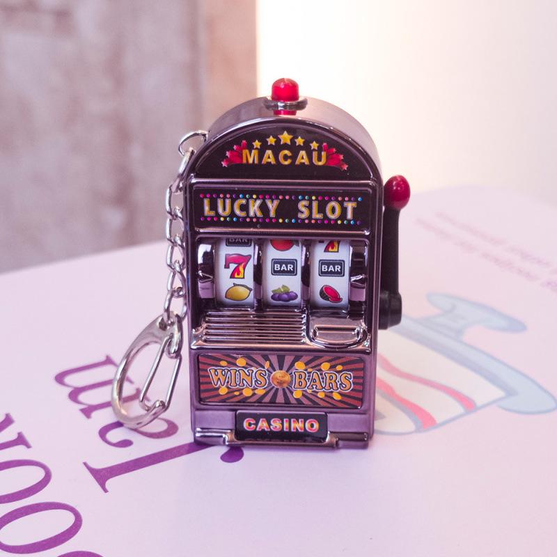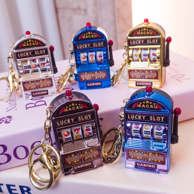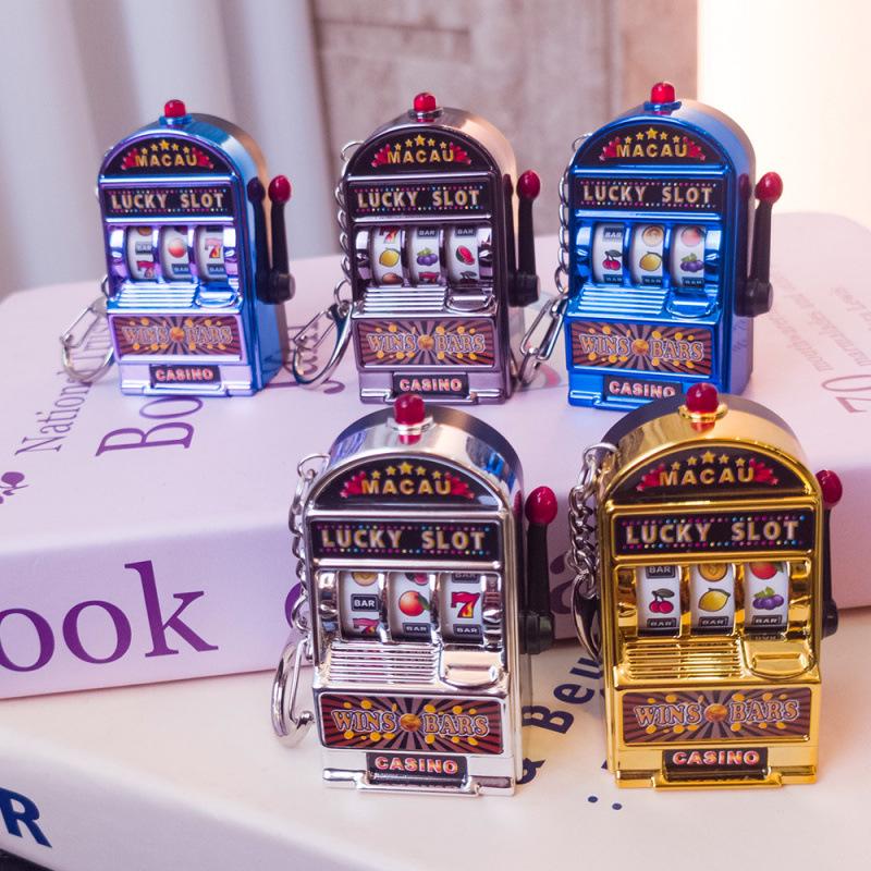 Light-Up Fruit Machine Spinner Keychain with Music and Magnet - Travel Souvenir Gift